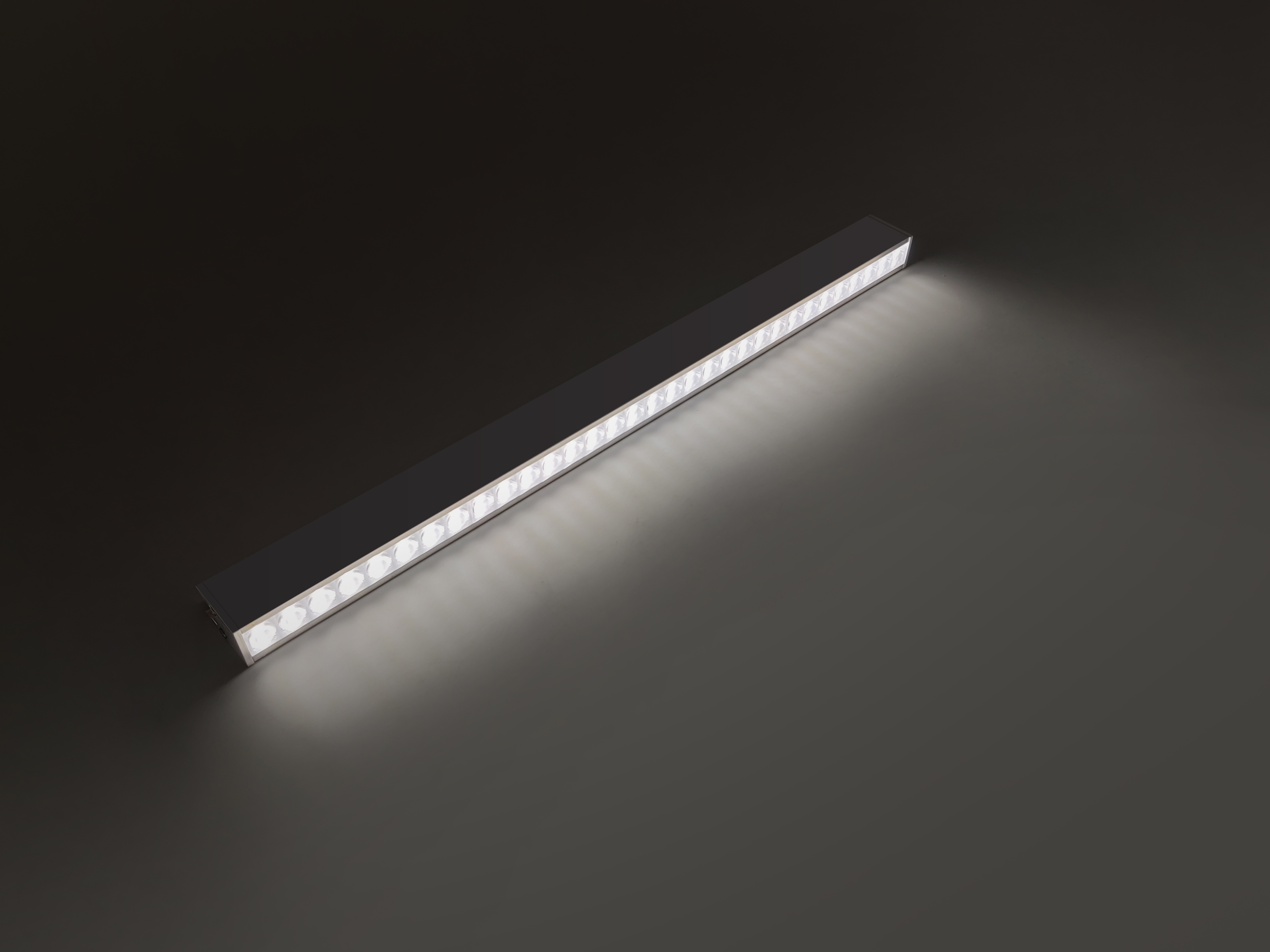 1, Precision TIR Lens: This linear light incorporates injected high-efficiency acrylic precision TIR (Total Internal Reflection) lenses. These lenses ensure clean and focused light distribution, minimizing shadows and hotspots while highlighting wall textures effectively.